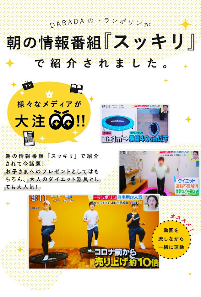 DABADA 折りたたみ トランポリン 無地 D-575 耐荷重150kg【ダバダ トランポリン 子ども 男の子 女の子 ダイエット 大人用 家庭用 おもちゃ エクササイズ トレーニング フィットネス 全身運動 体幹 バレンタイン ホワイトデー 母の日 父の日 敬老の日 クリスマス xmas】