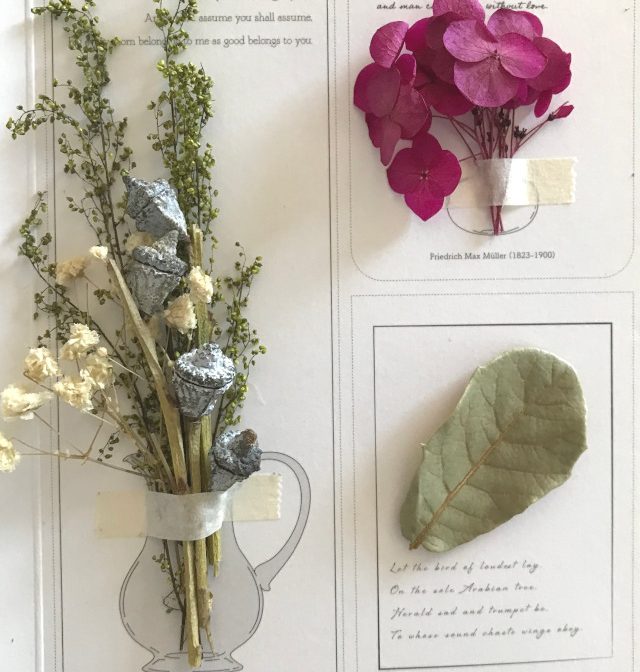 天然の植物を使用しているため花や葉、種などの配置や角度などに個体差があります。