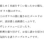 凹凸加工のガラスの淵に施されたゴールドのラインが、清涼感と高級感たっぷりで、みずみずしいメニューにぴったり。