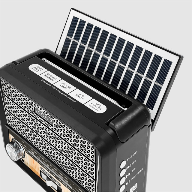 ECONIX LEDライト付ポータブルマルチラジオプレーヤー RL-70232【トレードワン ラジオ ワイヤレススピーカー MP3 ライト ソーラーパネル コンセント 乾電池 内蔵充電池 USB給電 Bluetooth マイクロSD キャンプ アウトドア 防災 災害 母の日 父の日 クリスマス xmas】