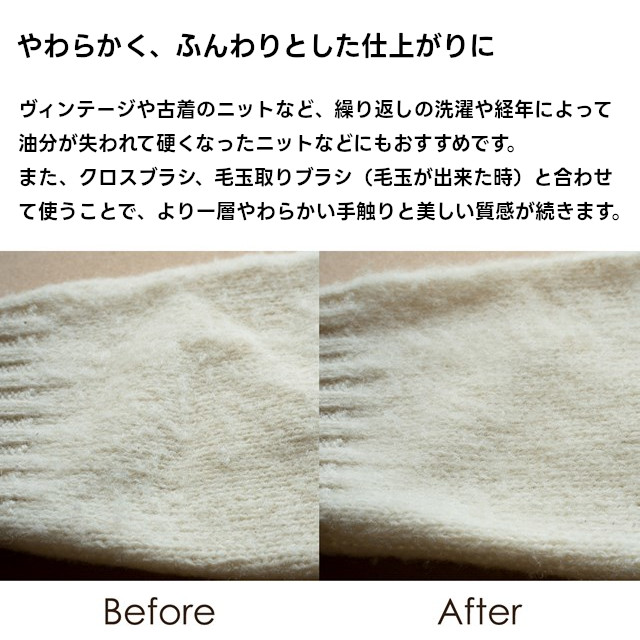 獣毛 の衣類は、洗濯を繰り返すと油分が失われ、パサつきやツヤがなくなっていきます。