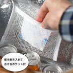 内側には保冷シートが貼ってあるのと、保冷剤を入れておけるポケットつき。食材が傷みにくくなっています。