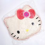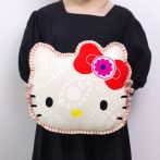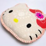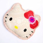ハローキティの顔型にインドの伝統工芸を使用し立体的かつ表情豊かに刺繍したクッション。