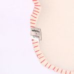 顔の周りにはアクセントカラーのレッドのステッチを手縫いで入れています。