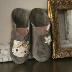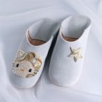 思わず目を引くゴージャスなビーズ刺繍でデザインされたハローキティのバブーシュ。