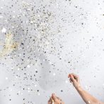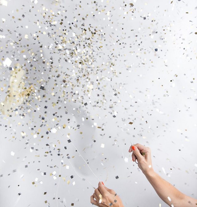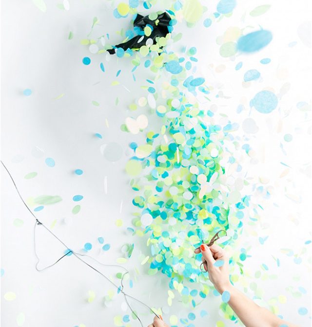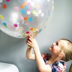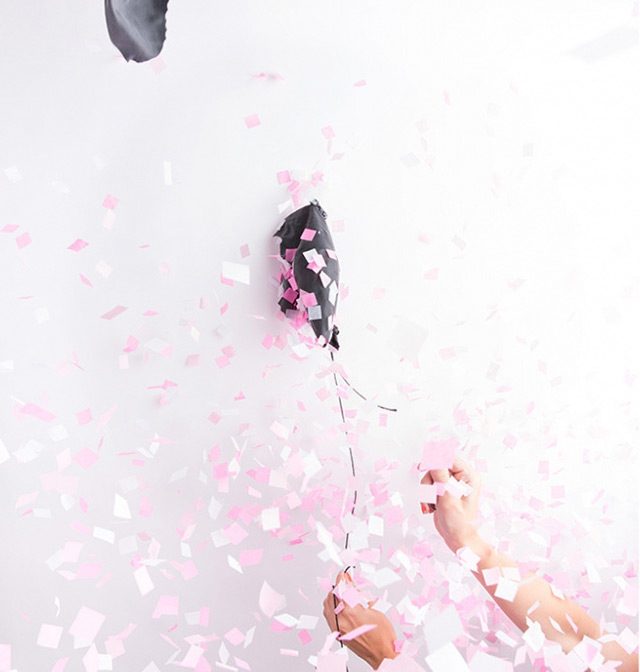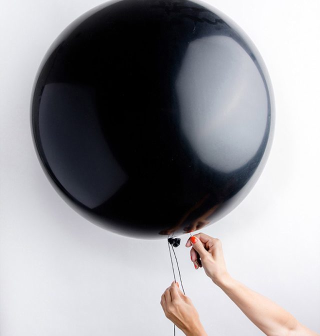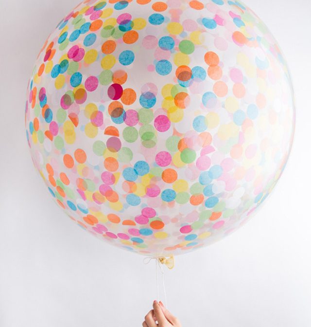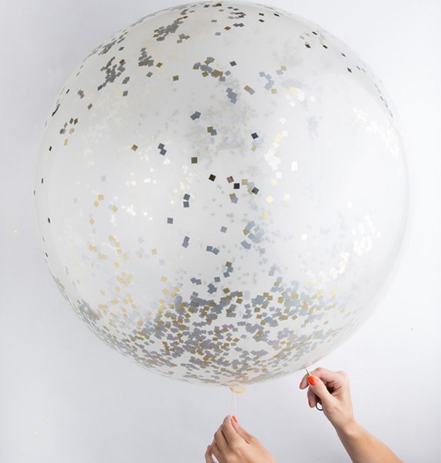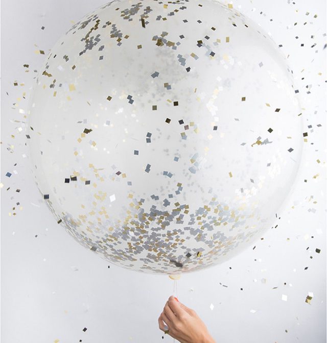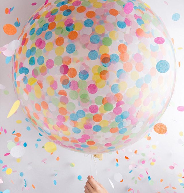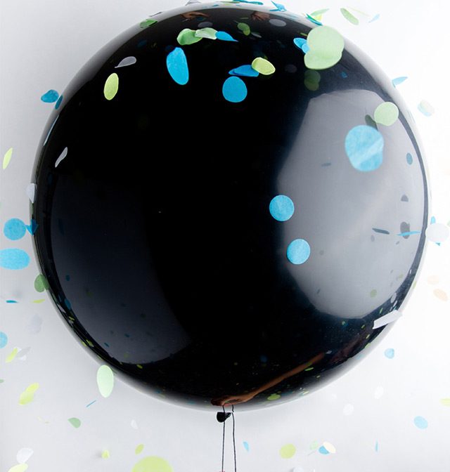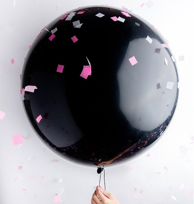 透明・ブラックの36(約90cm)の巨大風船の中にたっぷり紙吹雪が入っており、見ているだけでテンションUP。