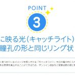 ・眼に映る光(キャッチライト)が瞳孔の形と同じリング状