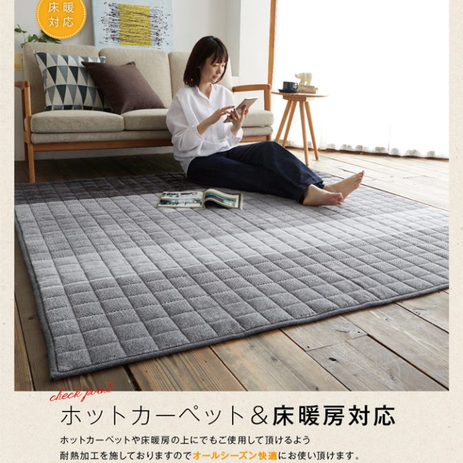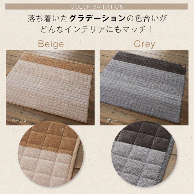 ポリエステルキルトラグ、人気のグラデーションカラー。洗濯機丸洗いOK、HOT床暖対応。