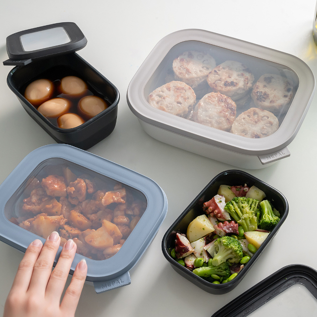 特徴的なノルディックカラーと液漏れしにくいと評判の仕様はそのままに、料理の下準備時にバットとして使用したりと更に使い方の幅が広がります。