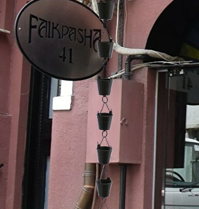 鎖樋(くさりとい)は屋根のすぐ下に横方向に取り付けられた横樋と呼ばれる樋から地面に向かって雨水を導く縦樋の一種です。