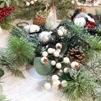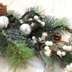 クリスマスシーンにぴったりなオーナメント付きのクリスマススワッグ
