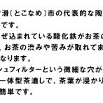 セラメッシュフィルターという微細な穴がたくさん開いている一体型茶漉しで、茶葉が浸かりやすく、洗う際も簡単です。