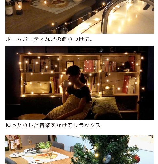 音とヒカリで空間を演出 【Bluetoothスピーカー】+【ストリングLEDライト】が一つになったBluetoothスピーカー ストリングLEDライト。お部屋を飾るなどインテリアとしても人気なストリングライトに、今までになかった3つの特徴を兼ね備え、パーティーやイベントなどを盛り上げます。