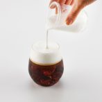 冷たい牛乳をカップの目盛り部分まで入れ、フィルターと上下カップをセットして20-30秒ほどシェイクすると、カプチーノ・カフェラテ用のキメ細かくなめらかな泡立ちミルクができあがります。