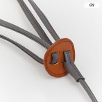 輪っかの部分に前足を通し、余った部分を背中のバックルで締めて微調整して使っていただけます。 素材はサステナブルを意識したヴィーガンレザーを使用しています。