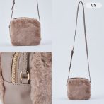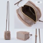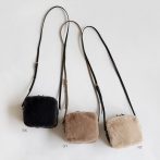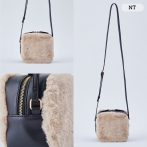 女性らしいファー素材に、ころんとしたキューブの形を合わせたショルダーバッグ。