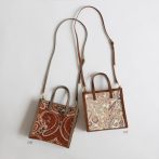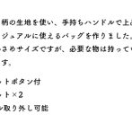ジャガード柄の生地を使い、手持ちハンドルで上品に、ショルダーでカジュアルに使えるバッグを作りました。