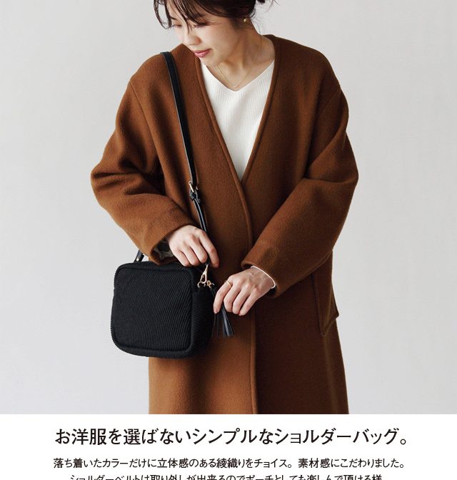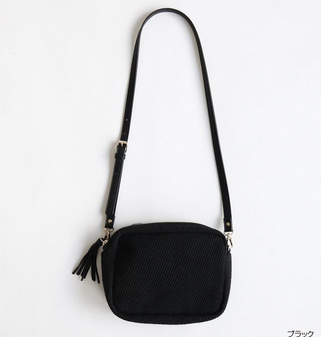 ショルダーベルトは取り外しが出来るのでポーチとしても楽しんで頂ける様、ファスナースライダーにはタッセル飾りを付けています。