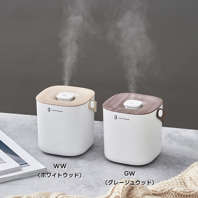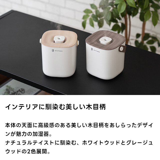 丸みのあるボックスデザインと美しい木目柄がおしゃれな加湿器