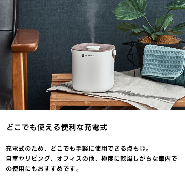【Life on Products】充電式ボックス型加湿器 -Premium WOOD- LCAHF014【ライフオンプロダクツ 加湿器 卓上 USB 小型 コンパクト 超音波式 間欠 乾燥対策 650ml オートオフ機能 パーソナル コードレス 花粉症対策 乾燥対策 ギフト 母の日 父の日 敬老の日 クリスマス Xmas】