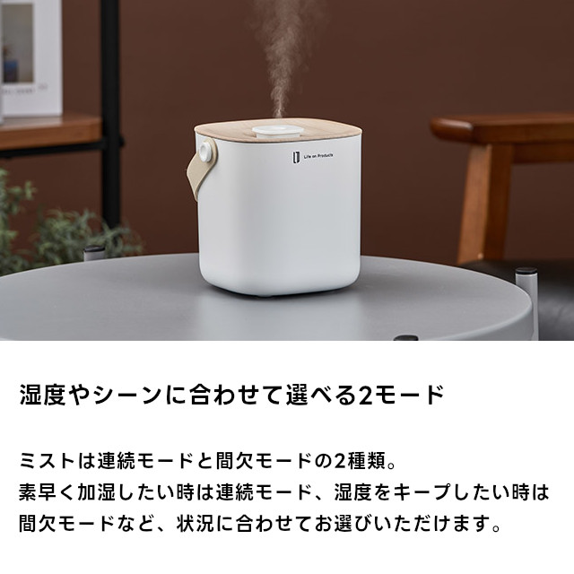 ミストは連続モードと間欠モードの2種類あり、お部屋の湿度やシーンに合わせて使い分けが可能です。