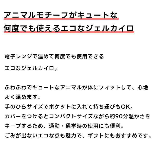 アニマルモチーフがキュートな、何度でも使えるエコなジェルカイロ