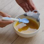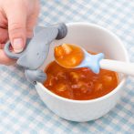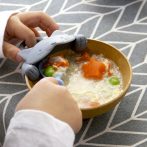 しっかり握れるおさかなのスプーンを、動物に食べさせるように使うとこぼさずに上手にすくえます。