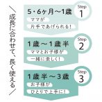 5・6ヶ月~3歳ころまで、お子様の成長に合わせて長く使えます。