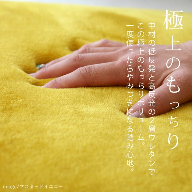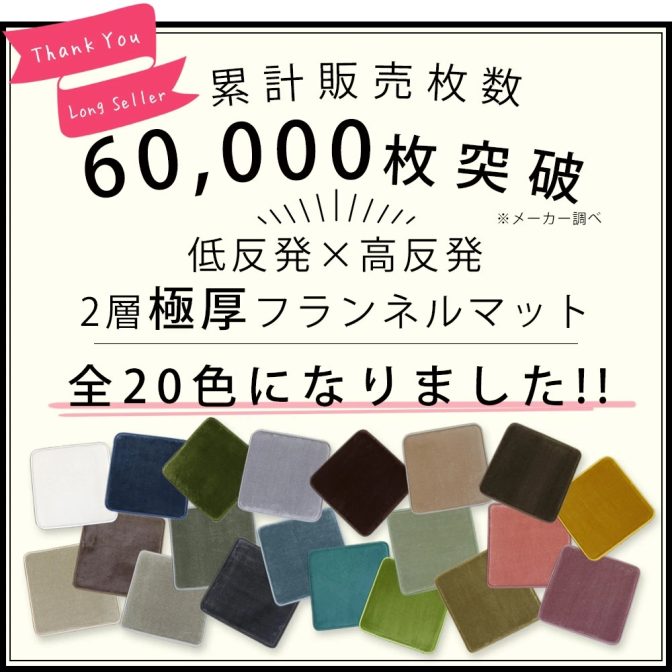 | 素材 | 表面:ポリエステル100% (フランネル) 中材:低反発ウレタンフォーム(約10mm) 高反発ウレタンフォーム(約10mm) 裏面:不織布 NPドット 耐熱性滑りにくい加工(PVC) |