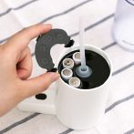 乾電池式を採用しているため邪魔なコードは排除、ご家庭の玄関やダイニングテーブル等の小さなスペースから、オフィスやエントランスホールなどでもご使用いただけるスリムなデザインです。
