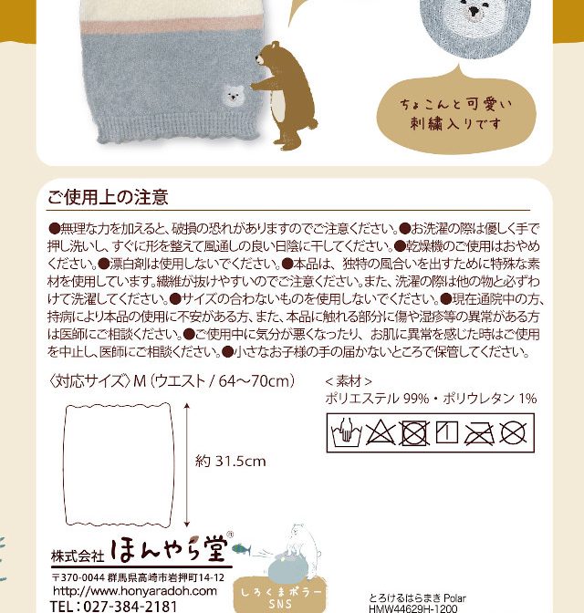 【Polar&Tere】とろける はらまき hmw44629 hmw44630【冷え取りグッズ ルームウェア 腹巻 はらまき 肉厚 保温 保湿 ギフト プレゼント 母の日 敬老の日 クリスマス xmas ほんやら堂】