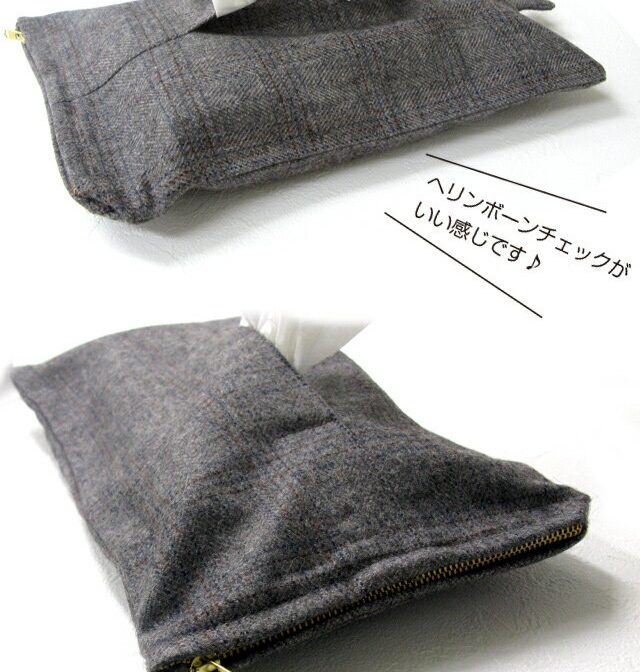 【RECYCLE WOOL】BOX ティッシュ カバー ヘリンボーン チェック 303349【ティッシュ ケース カバー お洒落 かわいい】