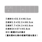 | サイズ | 商品サイズ:約W32.7×D7.5×H8cm 内寸:1:約W4×D2.5×H6.5cm 2:約W3.5×D2.5×H6.5cm 3:約W7.7×D4.3×H3.8cm 4:約W24×D7×H5.8cm ※H=底面からの高さ(蓋を閉めた時の収納可能な高さ) |