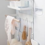 L字バーはバスマットやバスタオル、フックは、ブラシやスポンジなど、掃除用品をかけれます。