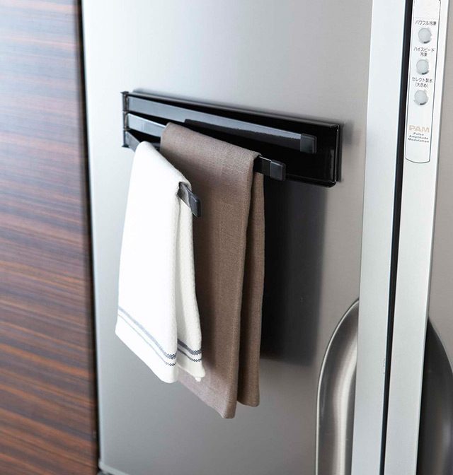 冷蔵庫の扉や側面にマグネットで簡単取り付けの布巾ハンガー。