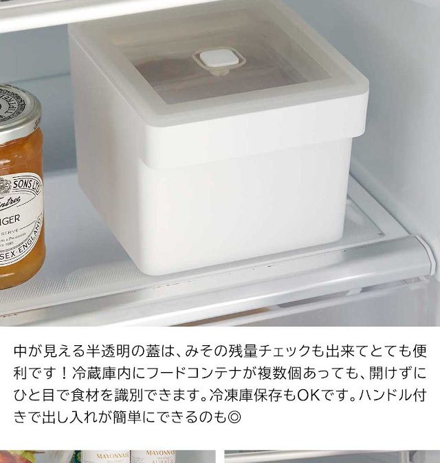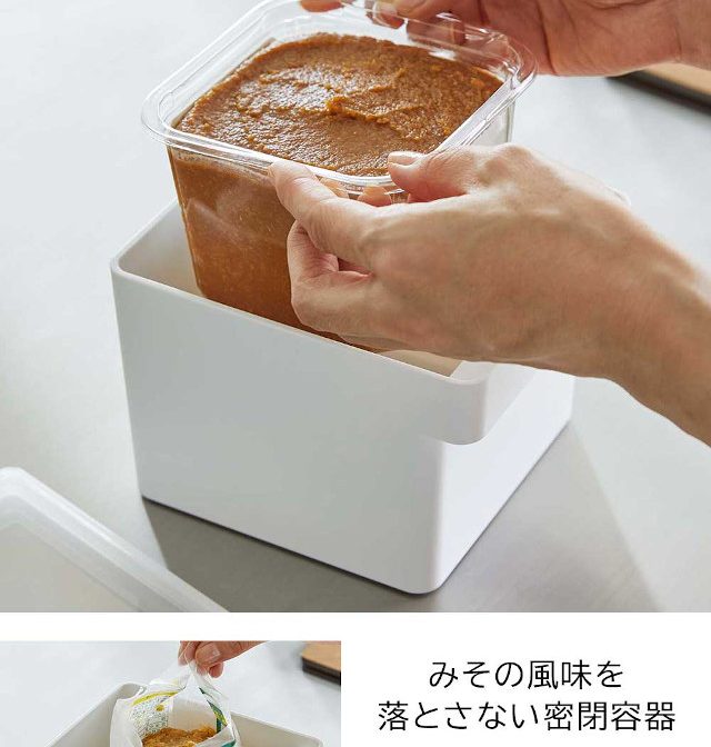 ハンドル付きで出し入れしやすい、みその保存に最適な密閉フードコンテナ。
