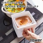 【tower】みそパックごと収納 ハンドル付き 密閉フードコンテナ 約1500ml ホワイト ブラック 7737 7738【山崎実業 タワー 味噌 袋ごと 直入れ 冷凍 食洗機 電子レンジ対応 保存容器 密閉容器 作り置き 取っ手付き シンプル キッチン収納 yamazaki】