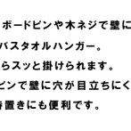 付属の石こうボードピンや木ネジで壁に取り付けてスリムに使えるバスタオルハンガー。