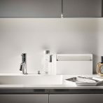 フィルムフックで壁面に浮かせて取り付けできるから衛生的。