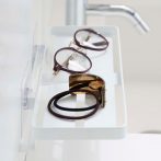 トレーの幅が大きいのでメガネやヘアゴム、ヘアピンなどの一時置きにも使えます。 貼って剥がせるフィルムフックでしっかり固定できるから安心。
