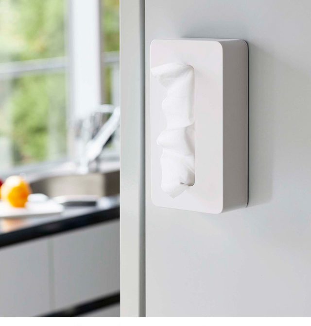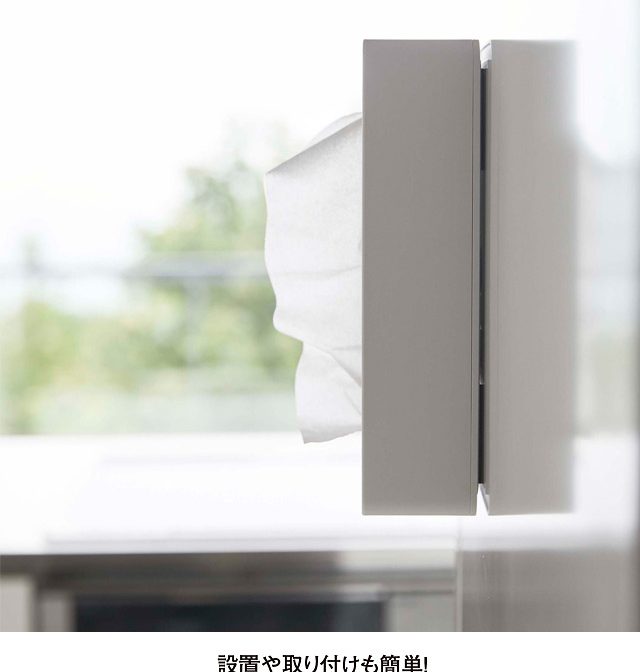 | 対応サイズ | ■対応ティッシュ 枚数300枚(150組)までの袋入りティッシュペーパー(ソフトパック) ※箱ティッシュは対応していません。 ■取り付け可能な壁面 マグネットの付く平らな面・スチール壁面 |