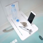 浴室壁面に付けるだけ! リラックスタイムを楽しむ折り畳み式の棚。