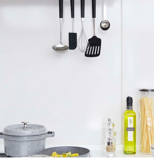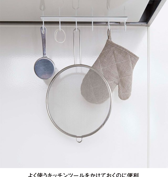 調理道具・鍋つかみ・計量スプーンなど、よく使うキッチンツールを掛けておくのに便利!