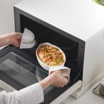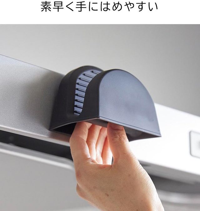 レンジフードやキッチンパネルにマグネットで浮かせて収納!使いたい時にサッと手に装着できるミトン型のシリコーン製鍋つかみ。柔らかくしっかりと掴めて、滑りにくい形状です。