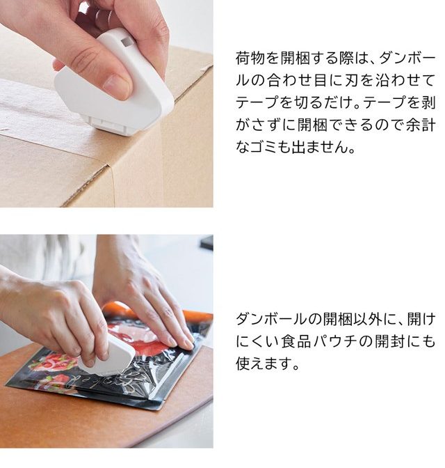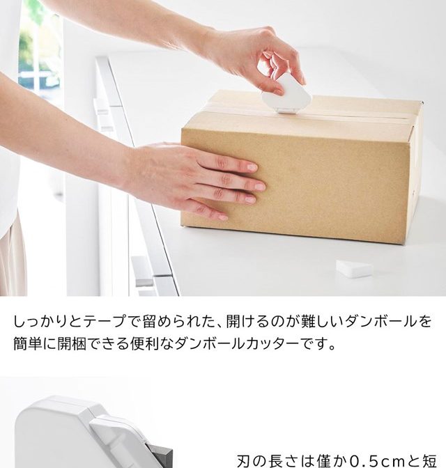 マグネットが付く玄関扉に簡単設置。ダンボールの開梱が簡単にできるダンボールカッター。金属より強いジルコニア製のセラミック刃を採用。刃が短く荷物の中身も傷つけにくい!