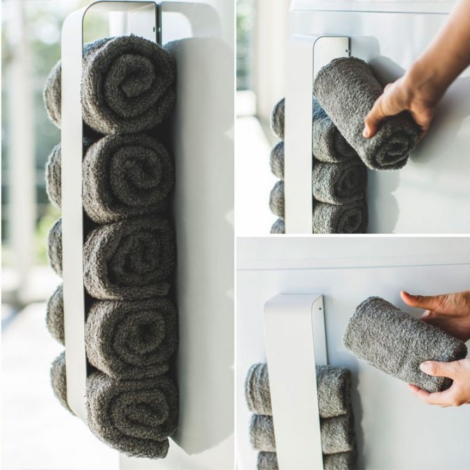 洗濯機に取り付ければ洗面所のタオルがすぐ取れて便利。