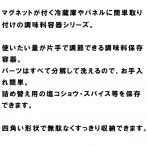 マグネットが付く冷蔵庫やパネルに簡単取り付けの調味料容器シリーズ。