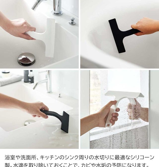 浴室の壁や鏡をカビや水垢から防いでくれるシリコーン製水切りワイパー。