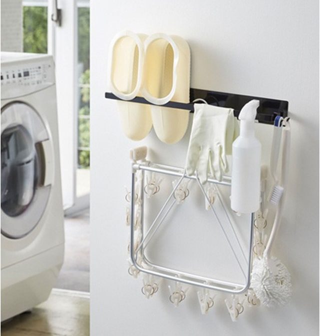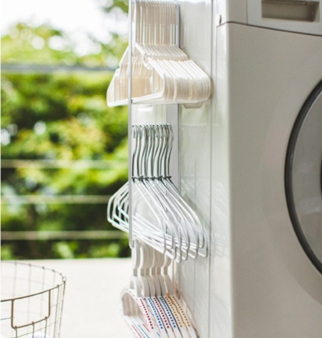 ランドリールームやクローゼットの壁面に。洗濯ハンガーを洗濯機横のすきまにスッキリ収納。