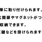 | 付属品 | マグネット×1 滑り止め×2 フック×2 取り出し口:約W12.4×D8.8cm面 |